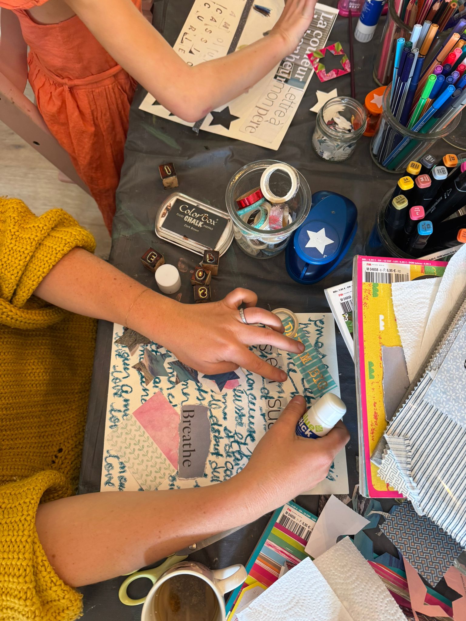 Atelier DUO parent/enfant. Une heure et demi pour se retrouver autour de la créativité. Retrouver son âme d’enfant pour maman ou papa et avoir un temps de qualité avec son enfant. Coller, découper, rigoler, essayer, papoter, expérimenter,… tout est permis.